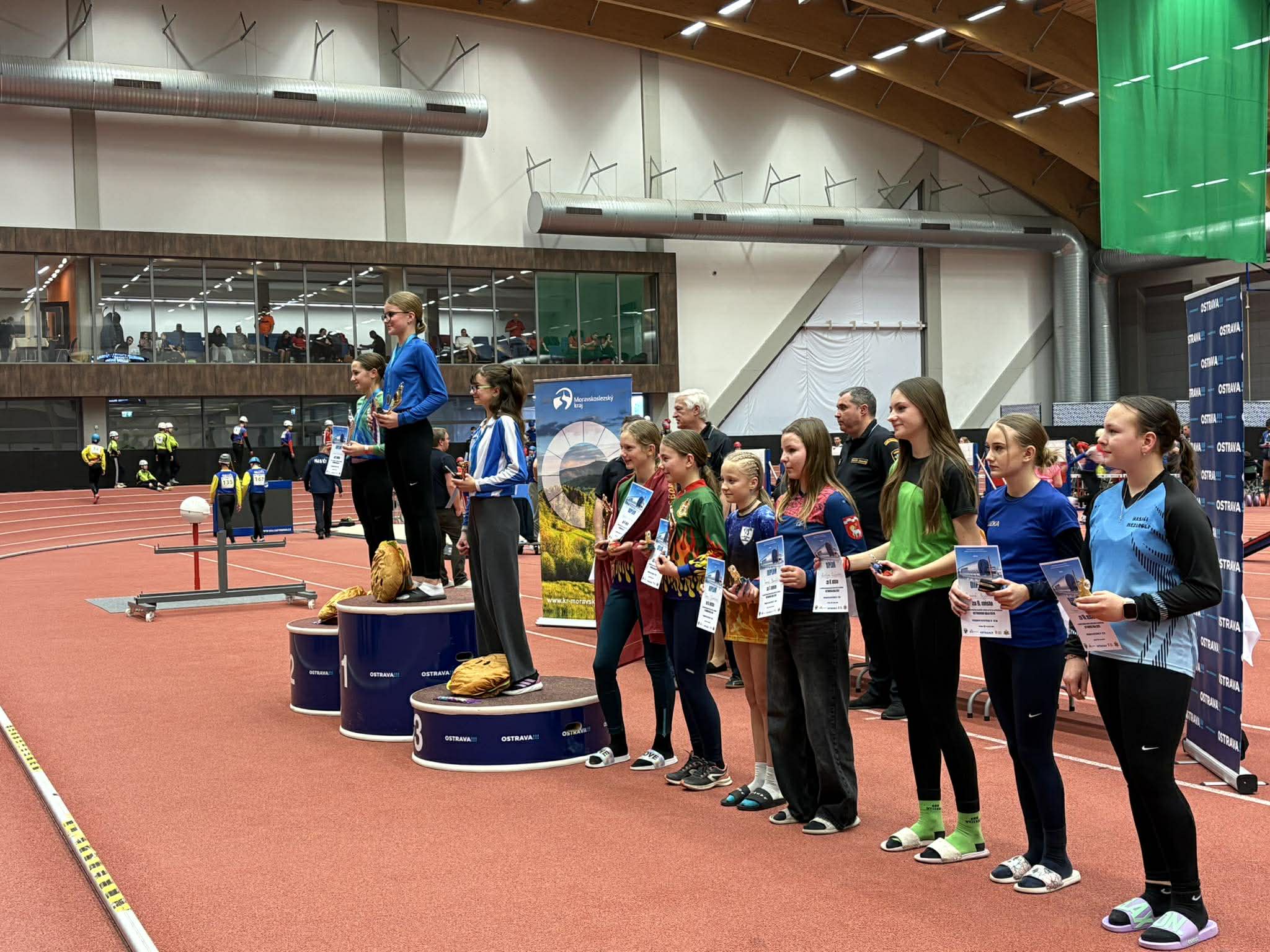 V sobotu 14. února jsme se zúčastnili 1. kola Českého halového poháru v Ostravě. V 6:00 jsme vyjeli ze Starého Kolína a v devět jsme se prezentovali v hale. Jako první běhal starší dívky v kategorii 12–13 let, kde jsme měly dvě zástupkyně, a to Týnu ta se s časem 17:57 umístila na 85. místě. A Zuzka s časem 13:44 brala 9. místo ze 100 závodníků. Po odběhání prvního pokusu následovaly starší dívky ve věkové kategorii 14–15 let. V této kategorii nás reprezentovala Péťa s časem 13:61 se umístila na 50. místě ze 130 závodnic. Po doběhání druhých pokusů začali běhat starší chlapci v kategorii 12-13 let, kde jsme měli jednoho zástupce a to Míšu. Míša s časem 15:60 bral 22. místo z 86 závodníků. Posledním, kdo se za nás na start postavil byl v kategorii starší chlapci ve věku 14-15 let Filip. Filip s časem 13:52 bral 32. místo ze 197 závodníků. Po 16. hodině jsme vyrazili znovu na tří hodinovou cestu domů.